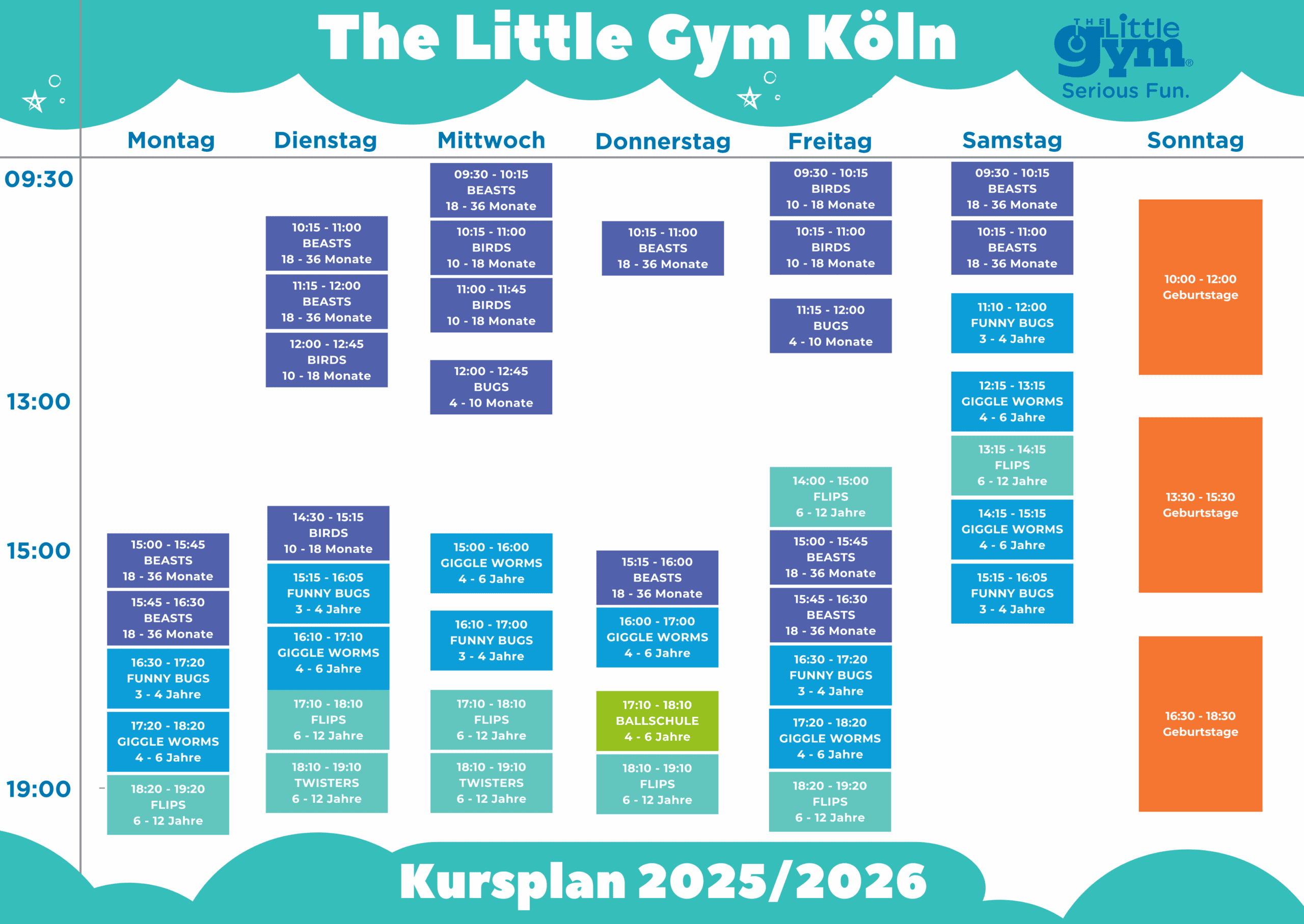 Spaß, Bewegung & Entwicklung – jede Woche! Unsere Kurse passen perfekt zum Alter deines Kindes und werden schnell zum Lieblingsmoment der Woche.