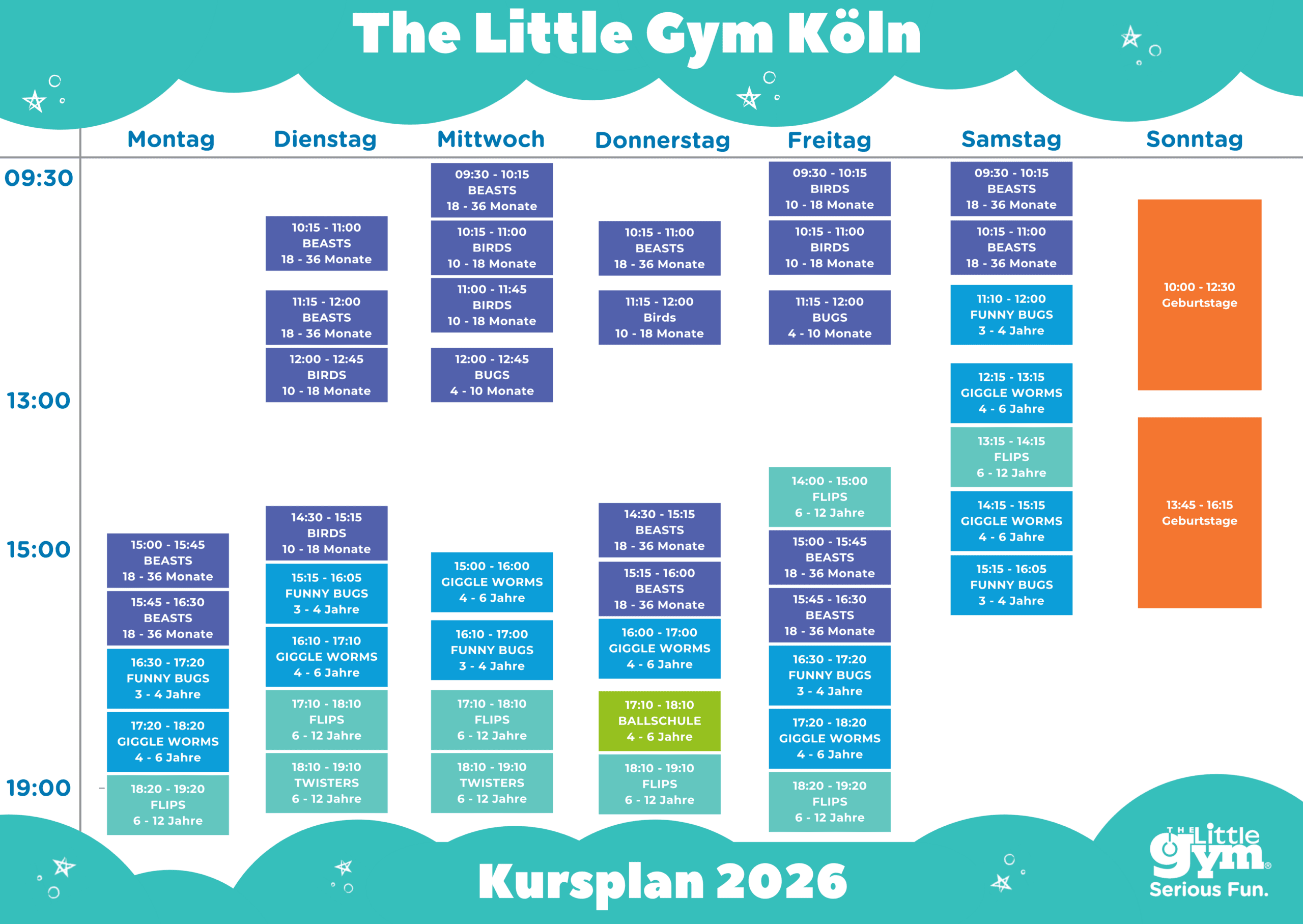 Die Kündigung muss schriftlich per Post oder via digital unterzeichneter Kündigung via Mail an koeln@thelittlegym.eu erfolgen.